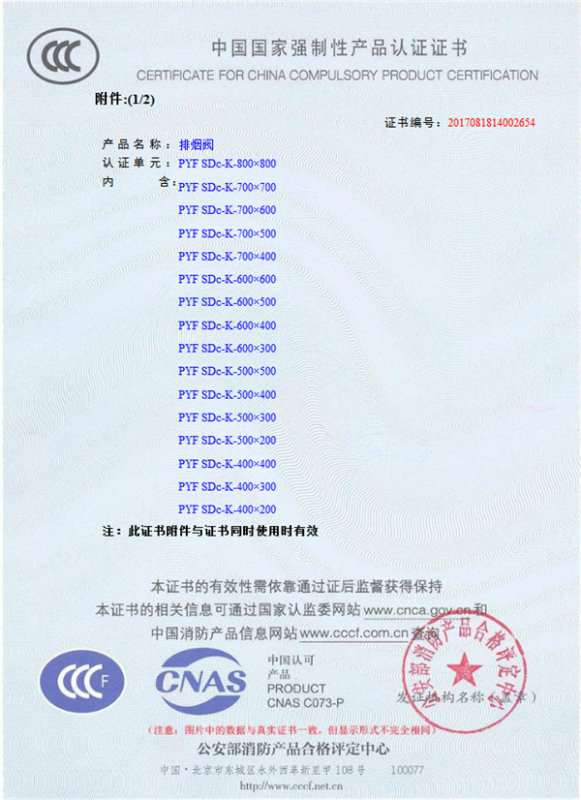 產(chǎn)品全通過(guò)國(guó)家消防檢測(cè)中心檢測(cè),獲得CCC證書(shū)